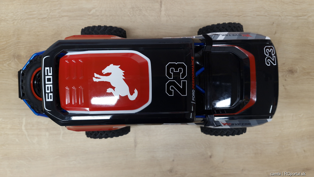 Model je používaný. Jazdený rekreačne na koberci. Všetko je funkčné. Karoséria poškodená vpredu– polepená páskou. Pridám novú nenastriekanú karosériu. Pridám aj náhradné kolesá…