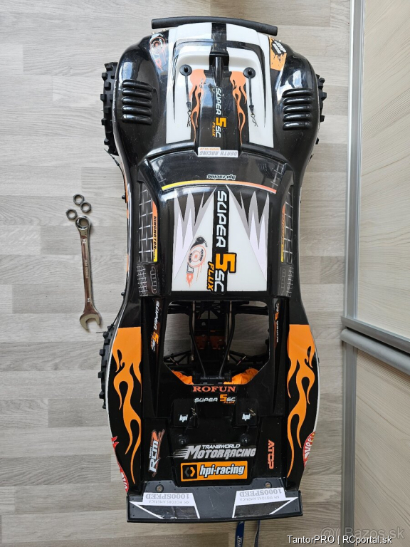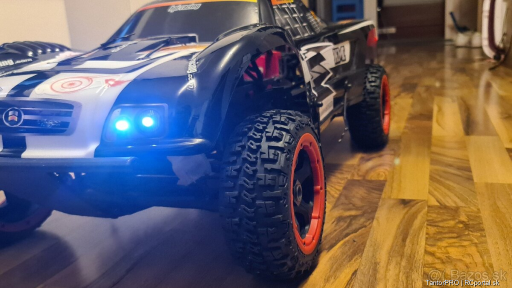 Model je používaný. Jazdený rekreačne na koberci. Všetko je funkčné. Karoséria poškodená vpredu– polepená páskou. Pridám novú nenastriekanú karosériu. Pridám aj náhradné kolesá…