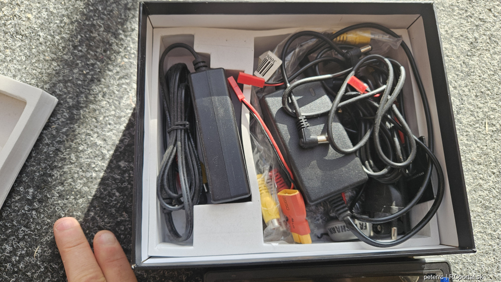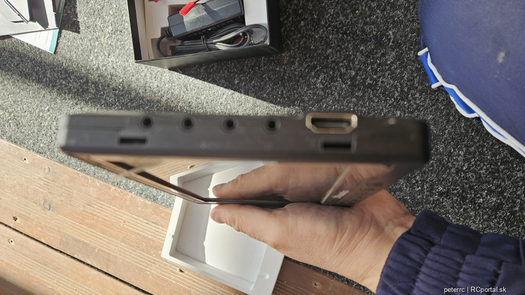FPV monitor HD02 Komplet v krabici, fólia na displeji Vstavaná baterka - neviem stav, ako vydrží, dlhšie nepoužívaný. Možnosť napájať z externej baterky. Nahrávanie obrazu na microsd…