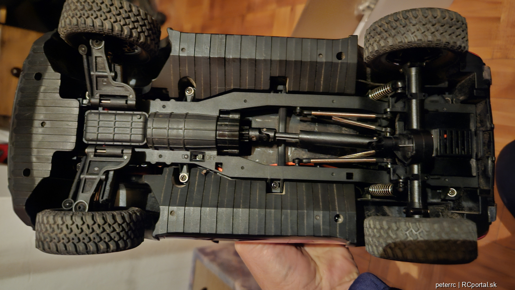 Úprava: predné poloosy vymenené za kovové, originálne plastové vydržali len chvíľu. Auto jazdí krásne a úplne v pohode. Aj s baterkou.
