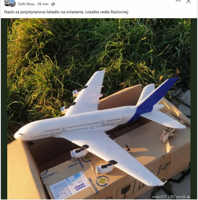Ja mam velku radost ze sa to lietadlo dostalo do spravnych ruk a ze som mohol niekoho potesit. Tiez sa chcem podakovat dobrym ludom ktory pohohli vypatrat spravneho majitela. A tesim sa na nejaky skusobny let (a mozno aj zasvetenie do tajov lietania) |