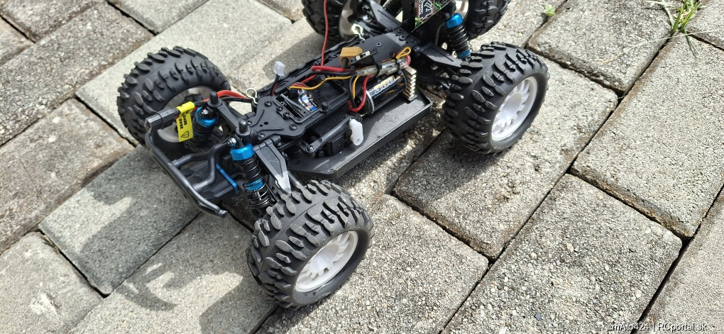 Model je používaný. Jazdený rekreačne na koberci. Všetko je funkčné. Karoséria poškodená vpredu– polepená páskou. Pridám novú nenastriekanú karosériu. Pridám aj náhradné kolesá…
