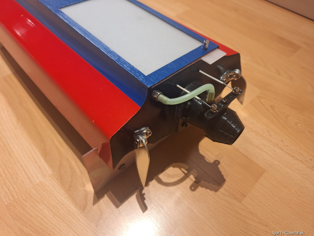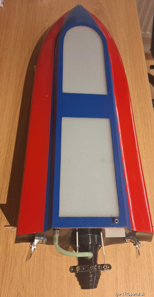 Áno je veľmi ponorená, keď si položíš trup na rovnú podložku mala by byť spodná hrana stevenky /náhonu/ 3-5mm od podložky. Sklon by mal byť v základnom nastavení nulový - rovnobežný s podložkou. Sklon sa môže meniť podľa toho ako sa model správa pri jazde ,model orie vodu stevenka hore alebo vyskakuje z vody stevenka dole. Vrtule Octura a K-čko su primárne určené na pohon poloponoreným náhonom, večer Ti pošlem odkaz čo máš hľadať. ![]() |