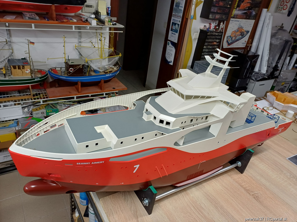 Kedze sa pomaly chyli stavba Skandi Icemana ku koncu, tak treba vopred mysliet, co nahradi jeho miesto na stole. Tento krat to bude tato lod, v mierke 1:72. Trup bude samozrejme zas lamiant. Model na formu je vyrobeny netradicne, 3D tlacou, trup bol vytlaceny z 5 kusov. Na forme sa uz pomaly zacne pracovat. ![]() ![]() ![]() |