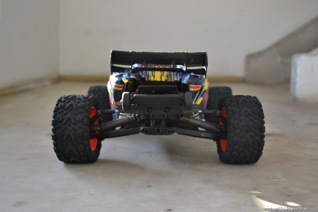Model je používaný. Jazdený rekreačne na koberci. Všetko je funkčné. Karoséria poškodená vpredu– polepená páskou. Pridám novú nenastriekanú karosériu. Pridám aj náhradné kolesá…