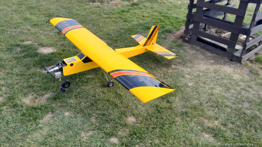 Trener, rozpatie 2m, pohon 2takt benzin 15 ccm rcgf (potrebne vycistit karburator a nastavit), nova folia a servo plynu, bez prijmaca, baterie + 20 e, tankovacia sada + 15 eur, starter hangar 9 do 20 ccm + 40 eur. Lieta to pohodovo, ale spalovaky ma neoslovili z dovodu przcnosti udrzby - ostavam pri elektro. Zvolen, 0907929266